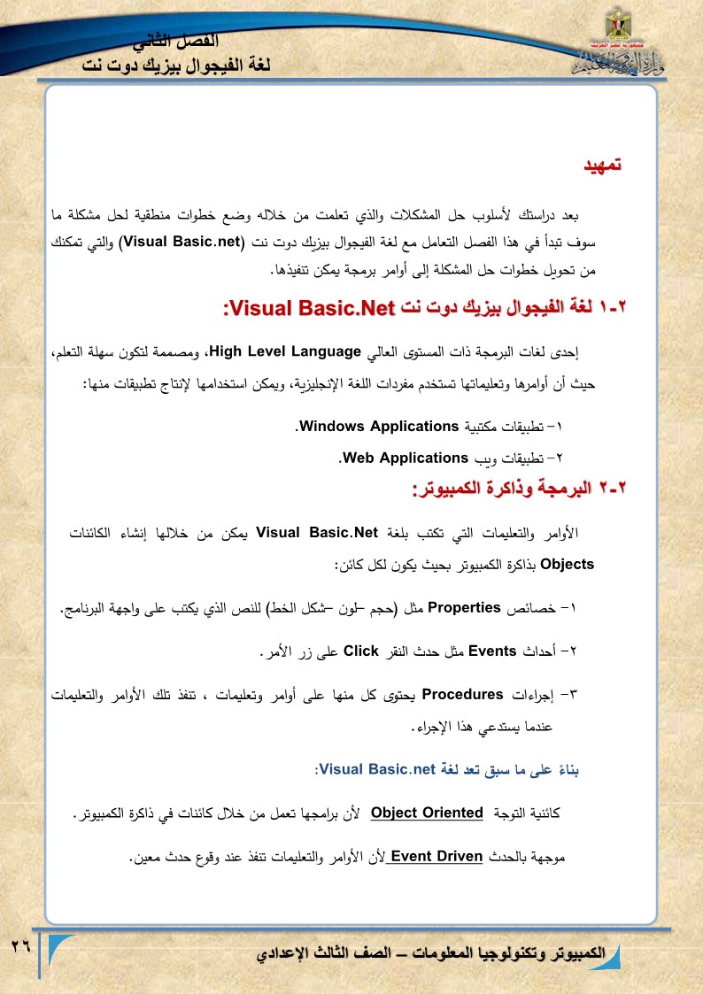 الفصل الثاني: مقدمة لغة الفيجوال بيزيك دوت نت Introduction to Visual Basic.NET