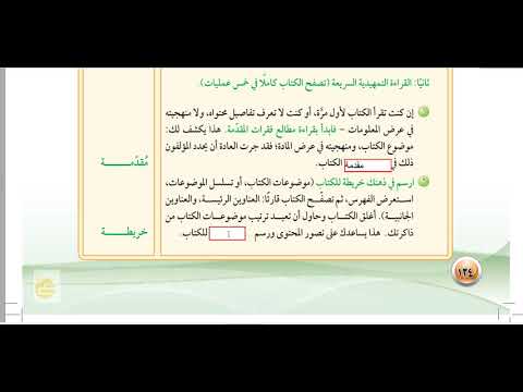 132 الوحدة التدريبية الثالثة 3 أين سأجد المعلومة التي أبحث عنها ؟ هذا السؤال يساعدك على اختصار الوقت الذي تقضيه في البحث عن المعلومة، فلو واجهك سؤال عن (قانون القوة) فمن الطبيعي أن تبحث عنه في كتاب فيزيائي، وبدلا من تقليب صفحات الكتاب من أوله إلى آخره ستذهب إلى فهرس الموضوعات؛ لتحدد موضع المعلومة. إن هذا السؤال لا يكون نافعًا إلا إن كنت تبحث عن معلومة 4 5 خطة إلام أحتاج لأستوعب بصورة أفضل ؟ يساعدك هذا السؤال على رسم للقراءة، كأن تقرأ مع زميل، أو تهيئ مكانًا هادئا للقراءة أو تستخدم كراسة خاصة للتلخيص وتدوين الملحوظات، أو غير ذلك، أو كل ذلك. وعلى كل حال فإنه من الضروري أن ترسم للقراءة قبل أن تبدأها. كيف سأتأكد من الفهم والاستيعاب؟ يستكمل هذا السؤال خطتك القرائية؛ فيحدد الأدوات التي تستخدمها لتقويم فهمك وتمكنك من المقروء. كأن تستخدم التلخيص بأسلوب السؤال والجواب، أو تستعين بزميلك أو قريبك ليطرح عليك أسئلة حول ما قرأت، أو تجيب عن أسئلة الكتاب، أو تسمع ما حفظت بصوت عال، أو تشرح الموضوع لأحد زملائك، وما شابه ذلك. والمهم أن تضع - قبل أن تبدأ القراءة - خطة للتأكد من والاستيعاب. ثانيًا: القراءة التمهيدية السريعة (تصفح الكتاب كاملًا في خمس عمليات). 1 2 إن كنت تقرأ الكتاب لأول مرّة، أو كنت لا تعرف تفاصيل محتواه، ولا منهجيته في عرض المعلومات - فابدأ بقراءة مطالع فقرات المقدمة. هذا يكشف لك: موضوع الكتاب، ومنهجيته في عرض المادة؛ فقد جرت العادة أن يحدد المؤلفون ذلك في الكتاب. ارسم في ذهنك خريطة للكتاب (موضوعات الكتاب، أو تسلسل الموضوعات، استعرض الفهرس، ثم تصفح الكتاب قارئًا : العناوين الرئيسة، والعناوين الجانبية). أغلق الكتاب وحاول أن تعيد ترتيب موضوعات الكتاب من ذاكرتك. هذا يساعدك على تصور المحتوى ورسم للكتاب. محددة خط الفهـ مُقدمة وزارة التعليم Ministry of Education 2024-1446
