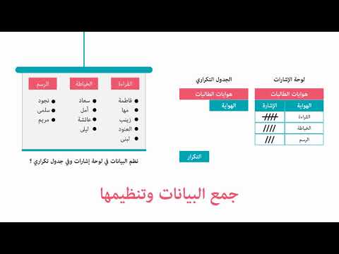 شرح انظر إلى البيانات التي جمعتها المعلمة ثم نظمها في لوحة إشارات وفي جدول تكراري